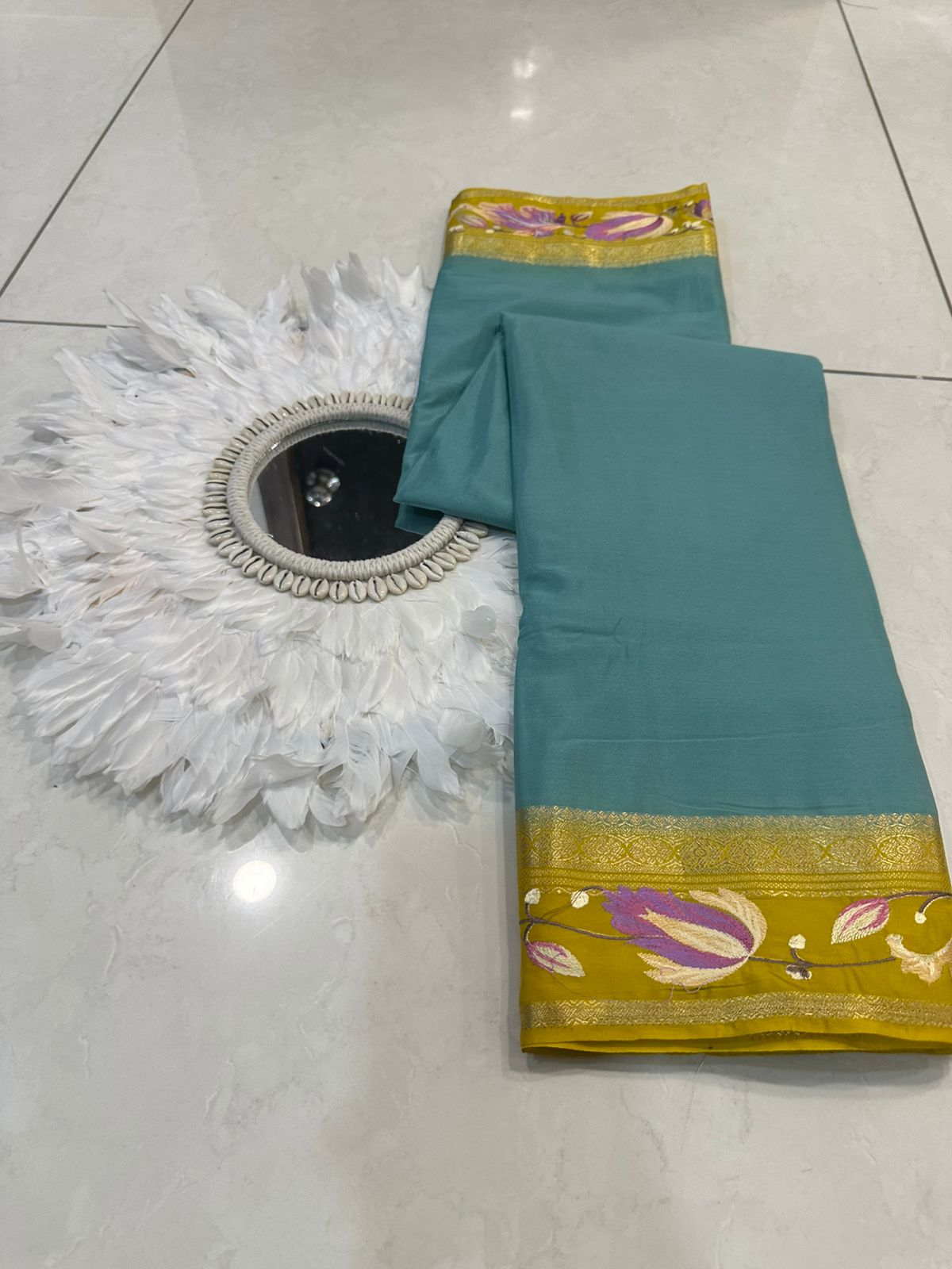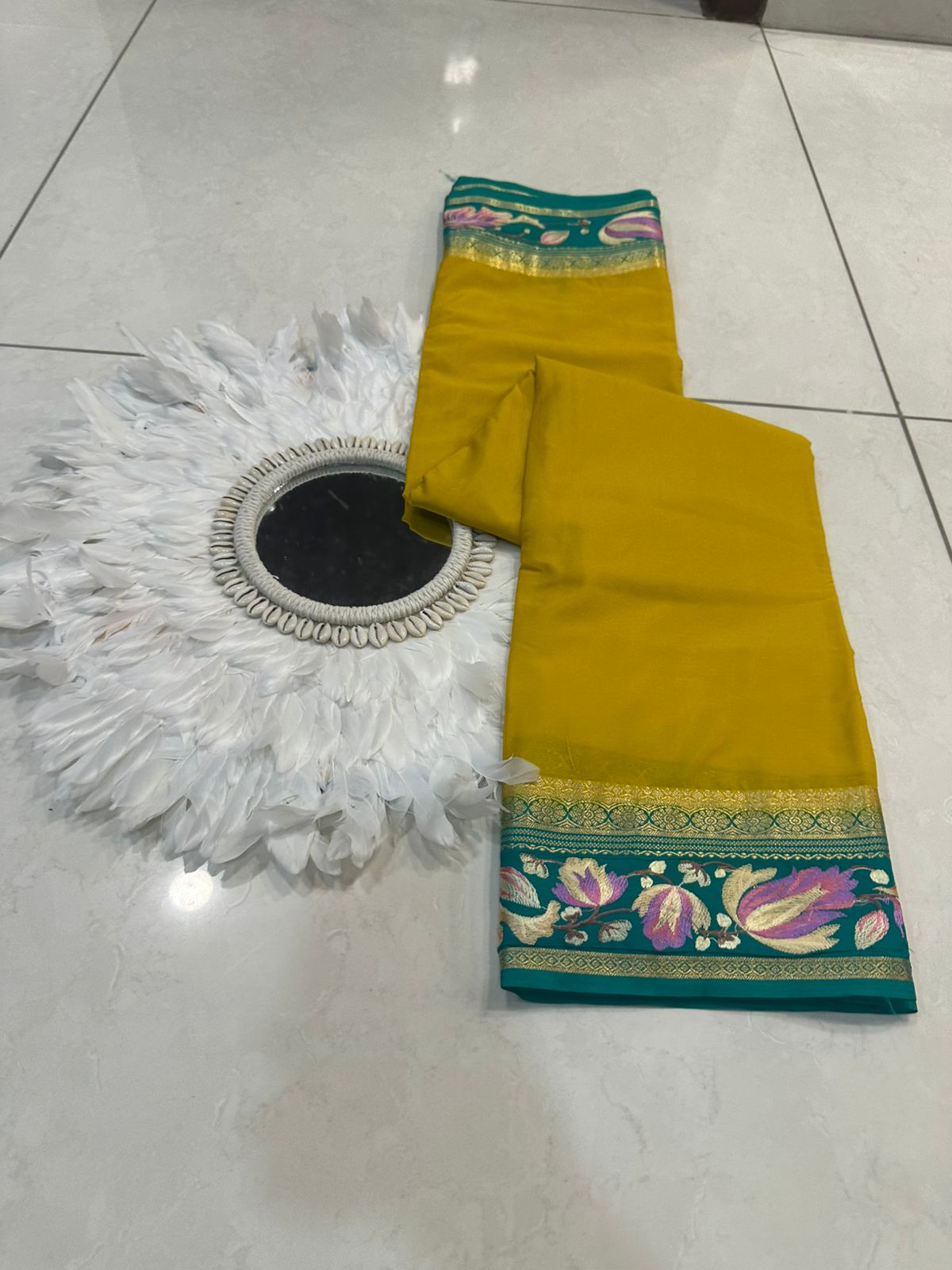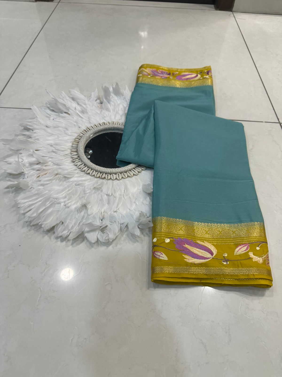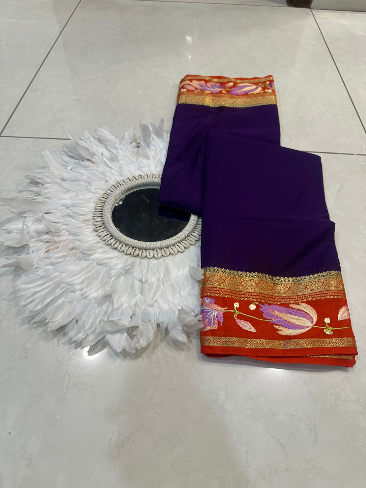 Beautiful Mysore silk sarees with contrast embroidery borders and contrast blouse