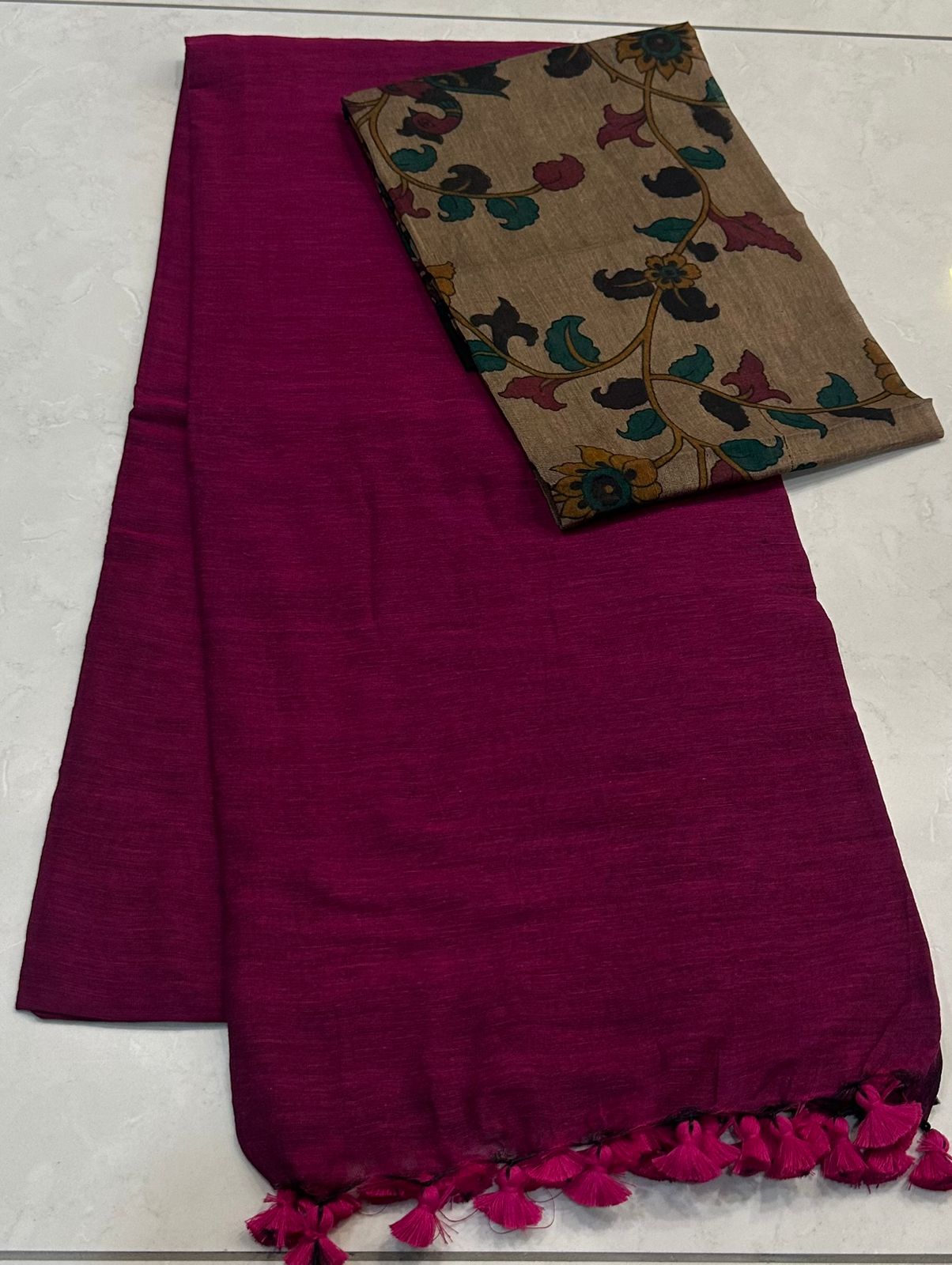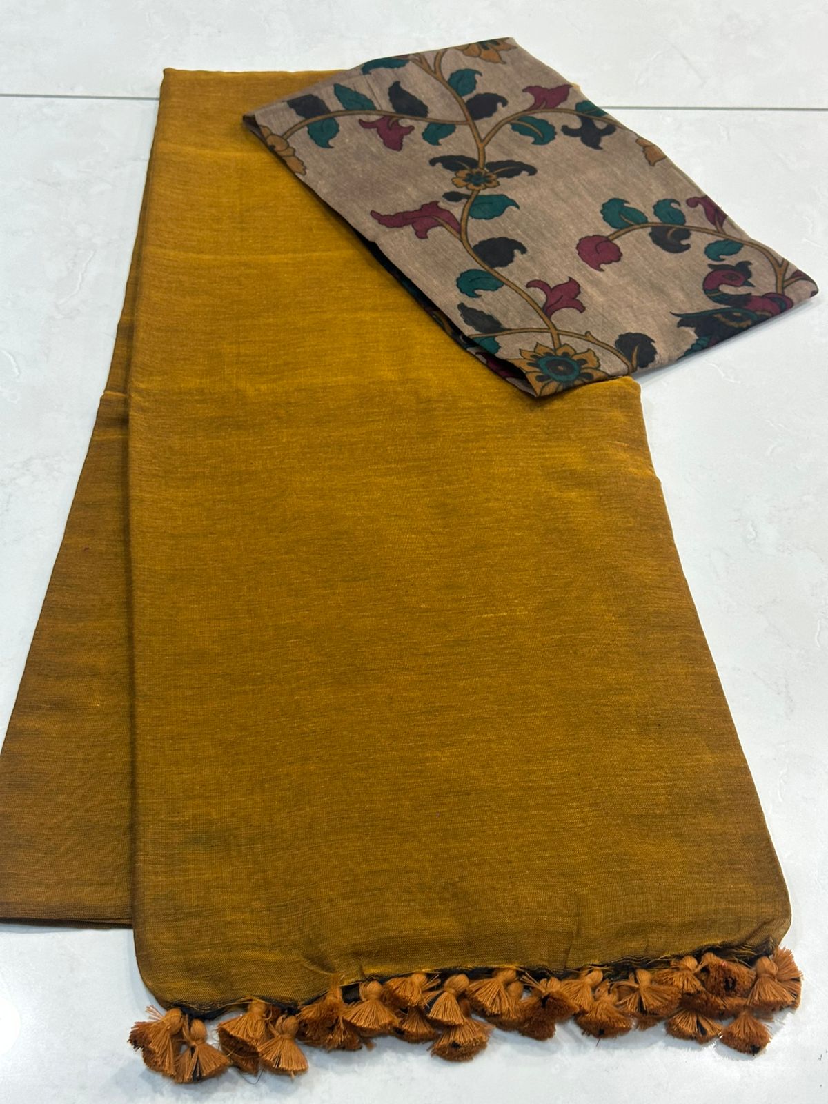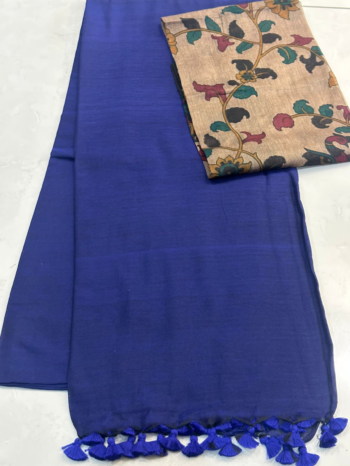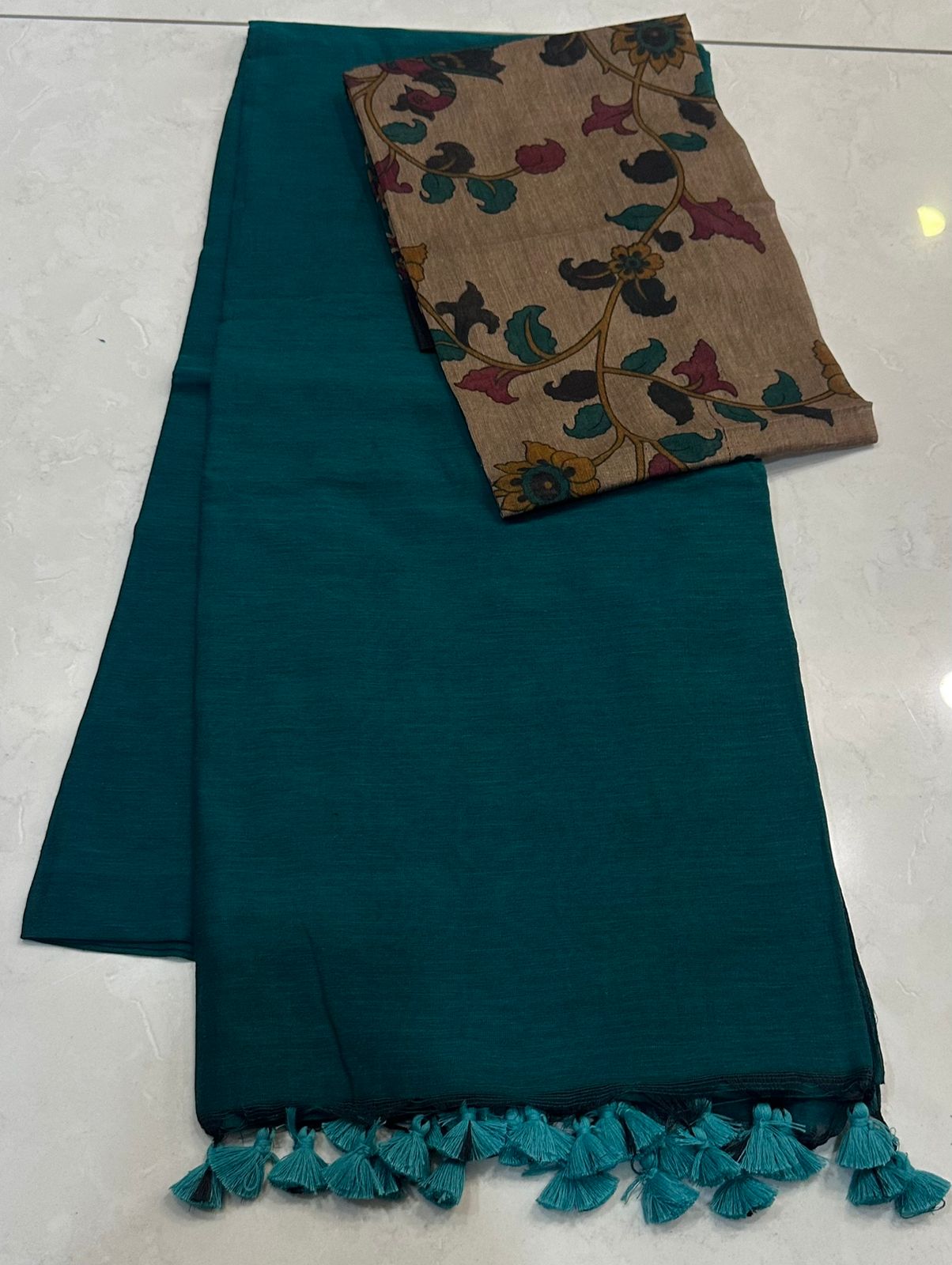 Exclusive Kalamkari cotton dyeable sarees with blouse
